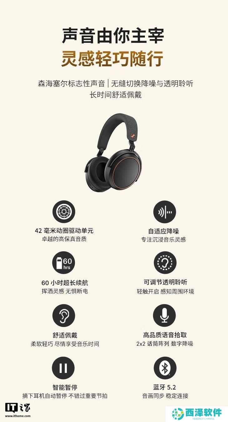 在性能上,这款耳机配备了42毫米动圈驱动单元和先进的2x2波束成形麦克风阵列,确保音质清晰、层次分明。它还拥有长达60小时的续航能力,并支持通过Sennheiser Smart Control应用程序进行个性化设置,让用户能够根据自己的喜好调整音效。