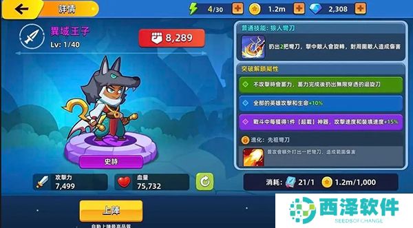 1、异域王子是超载类型,输出也不错,把它作为队长手动蓄力可以很好地清小怪。