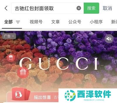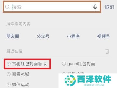 1、大家先进入微信,然后输入红包名,比如“古驰红包封面领取”。