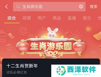 1.打开抖音,点击右上角【搜索】按钮,输入“生肖游乐园”进入即可进入游戏。