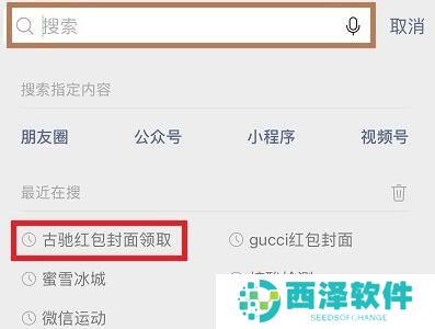 1、首先进入微信,再输入红包名,比如“古驰红包封面领取”。