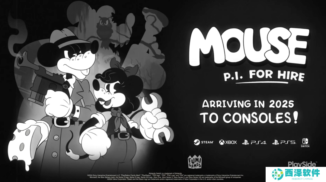 由 Fumi Games 开发的1930年代卡通风格的FPS游戏《Mouse P.I. FOR HIRE》最新预告公开,本作受现已不受版权保护的原版米老鼠动画启发,以复古和爵士乐为玩家带来不同的体验。玩家将扮演一名私家侦探,在一座充满帮派、暴民和黑暗人物的阴森城市中展开探索。在这种充满混乱、腐败和充满活力的大都会中,利用各种武器、能量道具和爆炸物来阻止腐败政客。游戏将于2025年登陆XBOX。