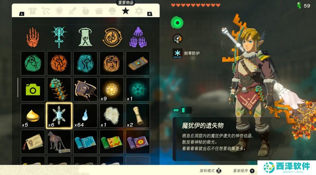 游戏中有很多洞窟区域,在洞窟里会有很多敌人“魔犹伊”,玩家将其击败后就会掉落“魔犹伊的遗失物”。建议使用弓和远程武器进行攻击,因为魔犹伊通常会贴在山洞顶上,不容易被打中。如果洞窟高度适中,玩家也可以尝试跳跃攻击来获取遗失物。