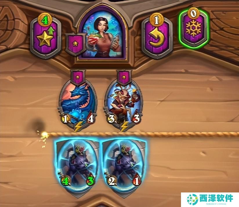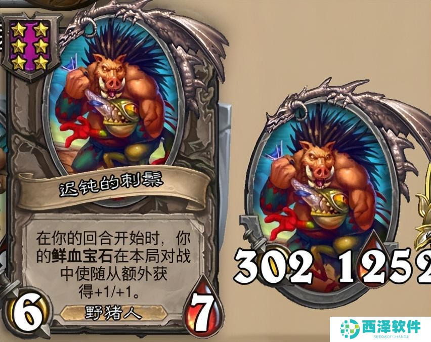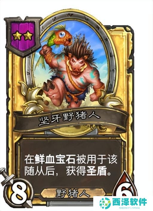 野猪人一本的怪身材1/2实在是太差了,所以前期三、四铸币回合还是推荐先选其他职业的高战力随从过渡,保持血量,为了两个鲜血宝石丢了太多血量那可就太不划算了。