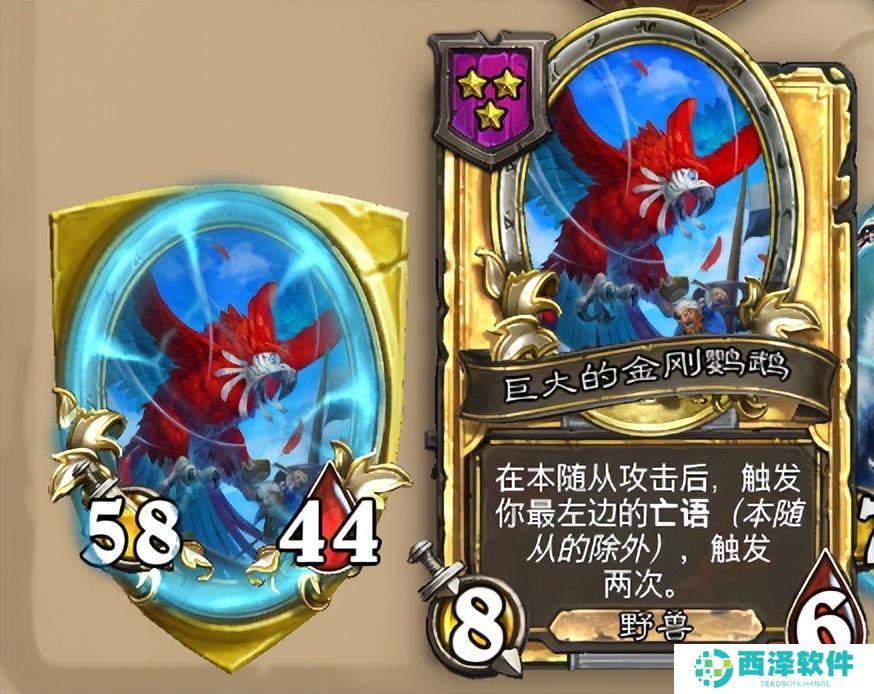 亡语三只小猪的上宝石频率是有上限的,在高分段只推荐在有野兽同时在场的局玩这个流派。还是比较依赖巨大的金刚鹦鹉提前触发免费亡语,瑞文不好找,但是现在鹦鹉可是烂大街了,上限就是贴好复生,合一个金。