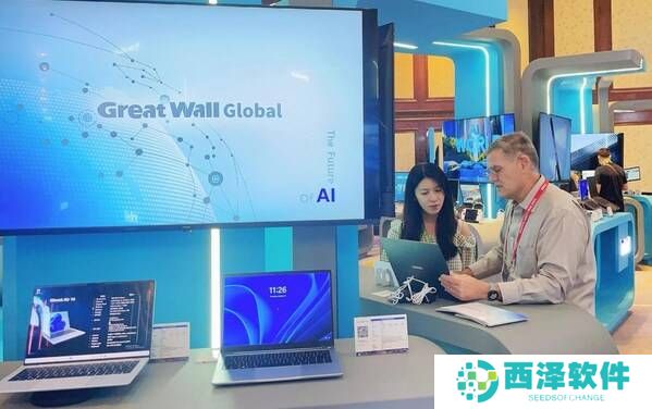 峰会期间,长城国际的展览区域成为了焦点之一。公司集中展出了多款自主研发的旗舰产品,其中Gbook Air 14笔记本电脑凭借其超轻薄设计和强大性能,吸引了众多参观者的目光。这款笔记本搭载了英特尔最新的处理器,不仅性能卓越,还支持复杂的离线人工智能处理任务,完美融合了高性能与便携性。