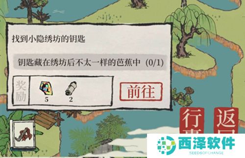 1、小隐绣坊的钥匙位置:在最大的芭蕉树下