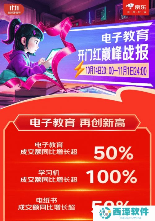 在京东11.11购物狂欢的热潮中,电子教育品类异军突起,成为消费者争相抢购的焦点。数据显示,截至11月1日深夜,该品类的成交额已同比激增超过50%,展现出强劲的市场增长势头。
