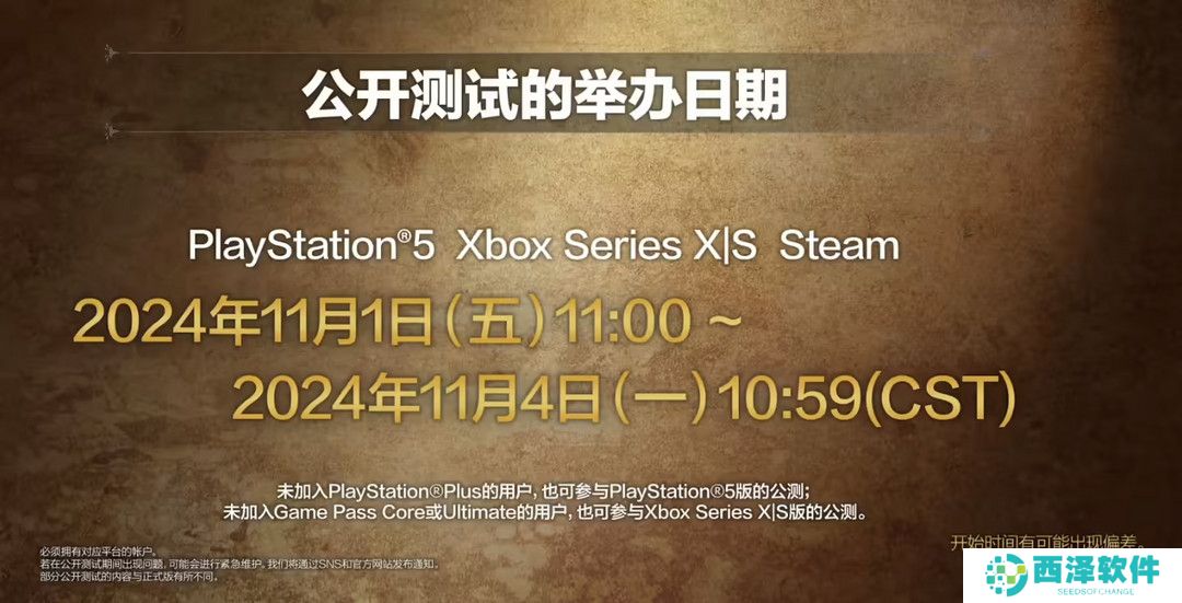 同时,官方宣布即将于11月1日-11月4日在PS5、XSX|S 与 STEAM 平台展开公开测试,PS+会员可在10月29日-31日提前进入测试,测试内容包含创建角色、故事体验任务以及劈兽讨伐三部分,创建的角色可继承到正式版本。