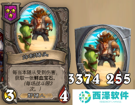 没有7本的野猪人,迟钝的刺鬃就是野猪人最好的成长手段,每回合自动+1/1,在体系成型之后,就可以一直带着。另外两个成长类野猪人一个亡语(+1攻强),一个战吼(+1生命),刺头吹笛人可以带到决赛场上,不过一般我们要保证狂战先手,注意把刺头吹笛人,放在第二或者第三的位置。
