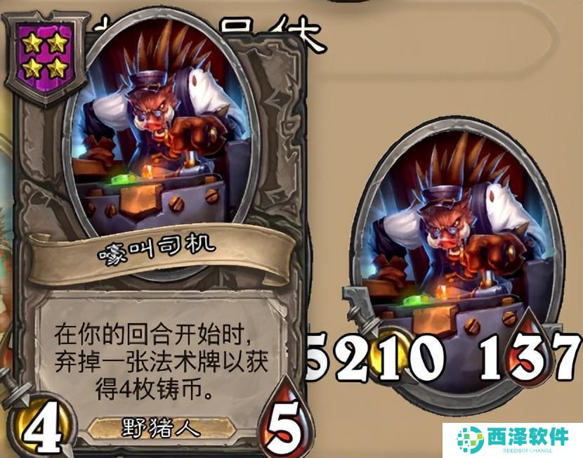 这张是前中期获取鲜血宝石的关键牌,三本顺利拿到的话,可以优先给宝石,每回合上限拿三张,然后回合结束留一张宝石触发嚎叫司机的效果,就能达到经济上面的积累,升本或者刷酒馆可都是需要铸币支撑的。