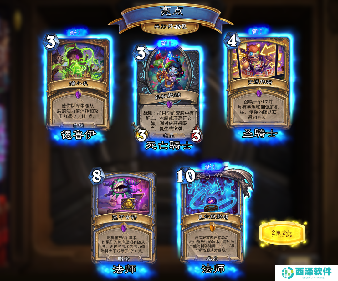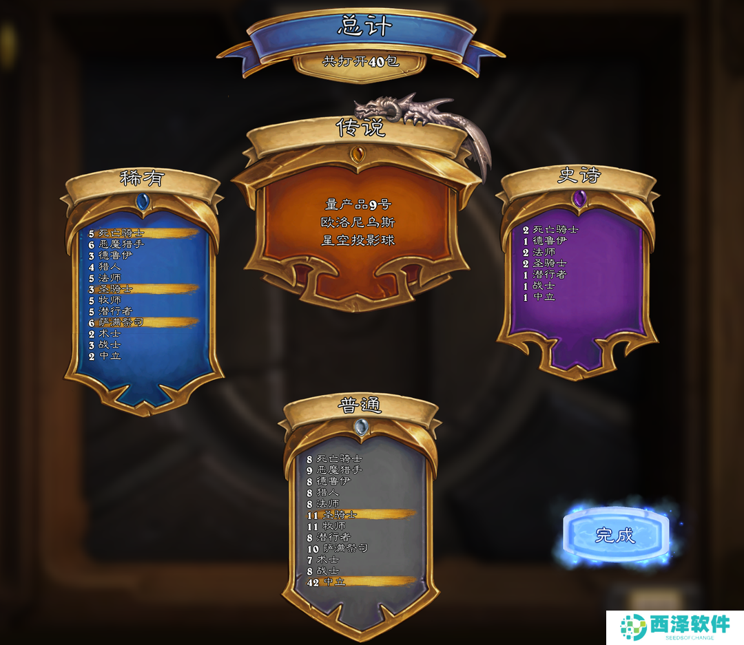 第二波40包开到**术法的核心星空投影仪,是的国服这边**术法的卡我都没去合,虽然我第一个金头就是法师,但是小二这人比较喜欢反着干,天梯哪个胜率高,我就去玩针对它的卡组。