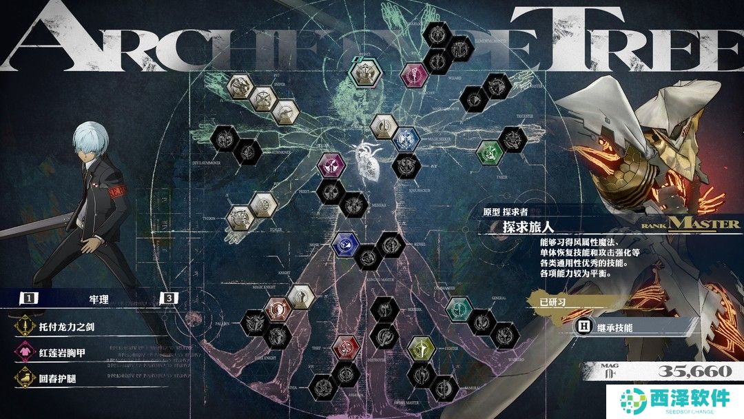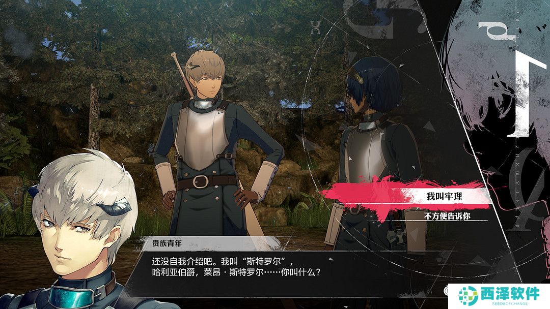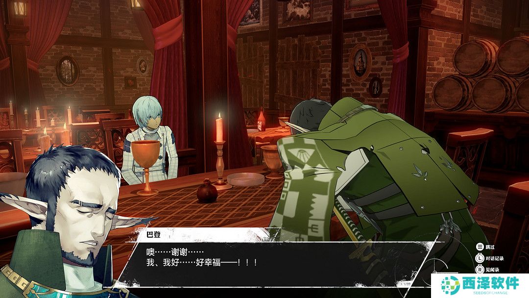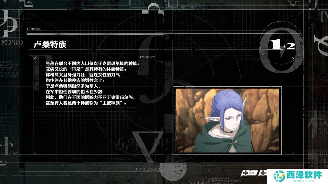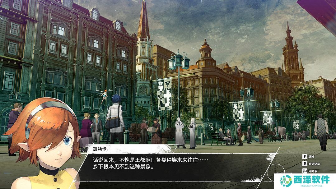 与女神异闻录的校园风和真女神的末世黑暗风不同,暗喻幻想属于略显严肃的异世界奇幻风。在这个充满剑与魔法的架空世界里,九大种族在同一块大陆共同生存,每个种族都有着详细的设定:在本作中武力担当的卢桑特族,又尖又长的耳朵和精灵十分相似;崇尚自由的克雷玛尔族,头部两侧的角是其最大的特征;被当作异教徒的睦兹塔立族,因为拥有第三只眼而常常戴上头盔。想要一开始就了解这么多种族并不是简单的事,因此游戏内置了一套见闻录系统,我们可以随时查看关于种族、城市、文化的相关资料,对于想要深入研究世界观的玩家来说十分方便。