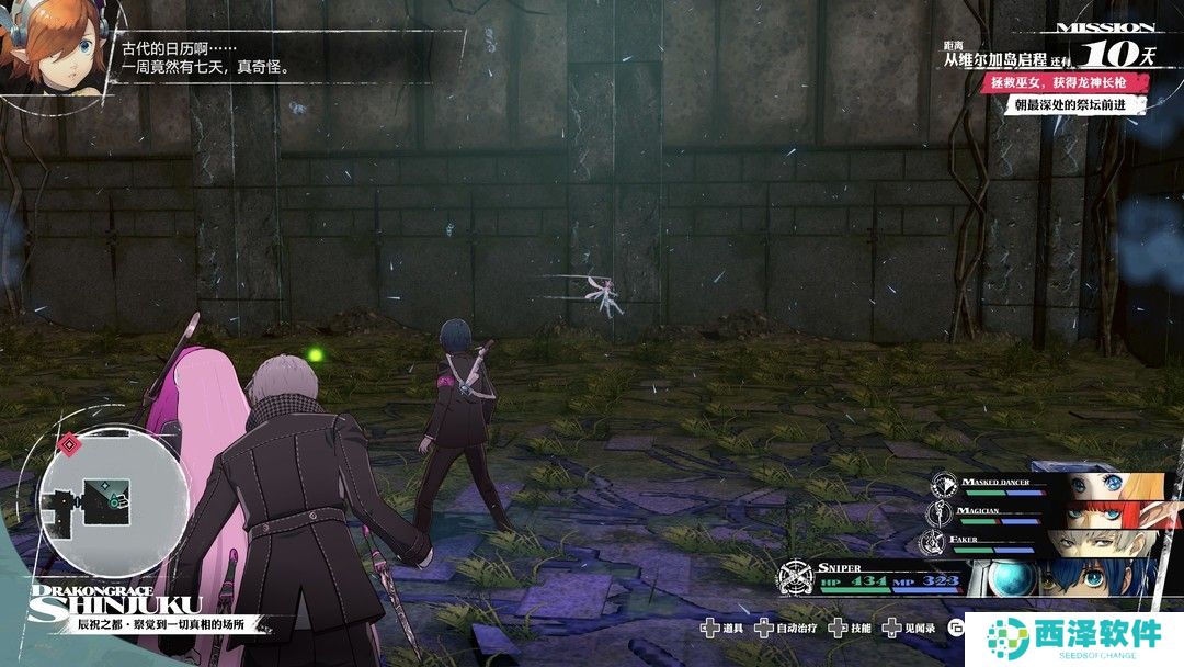 比较意外的是,游戏的迷宫探索竟然带了一丝魂味。尽管游戏自带了小地图,但如果你跑得太快没仔细观察,就很容易被躲在转角和柱子后面的敌人偷袭,再加上熟悉的“此门无法从这一侧打开”,Yes,indeed!这下真的对味了!另外,龙神宫殿的几张图还致敬了世界树迷宫,老玩家应该一眼就能看出来,也算是游戏的一个彩蛋吧。虽然我对频繁的钻狗洞和爬楼梯有一些不满,不过比起P3R千篇一律的爬塔还是好得多。