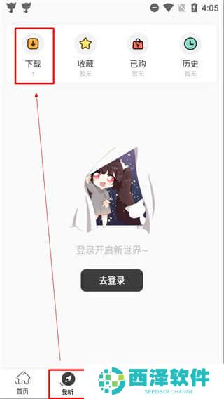 3、在“我听”界面选中图中的“下载”选项