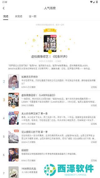 3、选择免费周榜,即可免费听该广播剧了