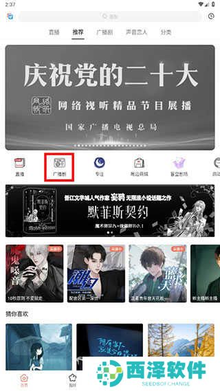 1、从本站下载猫耳FMapp,安装后进入首页,找到【广播剧】模块