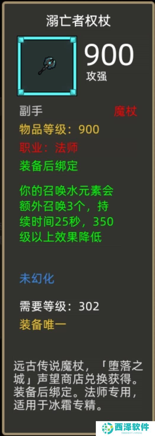 装备效果:你的召唤水元素会额外召唤3个,持续时间25秒,350级以上效果降低。