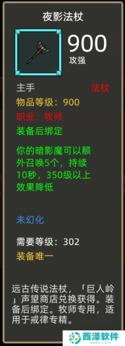 装备效果:你的暗影魔可以额外召唤5个,持续10秒,效果降低持续350级以上。