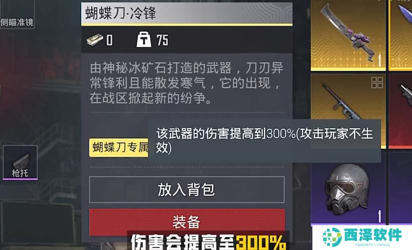 蝴蝶刀的专属词条是针对怪物有300%伤害加成,并且带有特殊的检视特效。