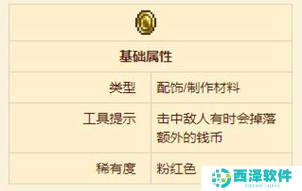 每次有额外硬币掉落时,掉落硬币的种类几率如下:89.1%的几率为铜币;9.9%的几率为银币;1%的几率为金币.