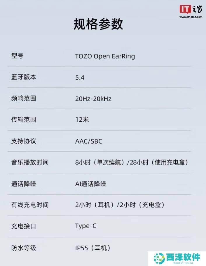 为了让消费者更加直观地了解这款耳机的性能和特点,TOZO还提供了详细的规格信息。从图片中可以看出,这款耳机在音质、续航、防水等方面都有着出色的表现,是一款性价比极高的产品。