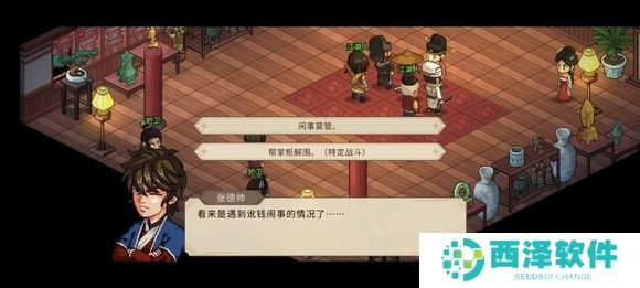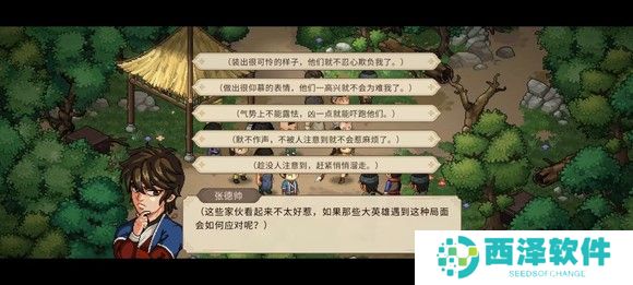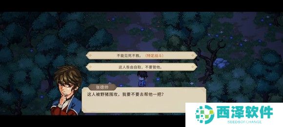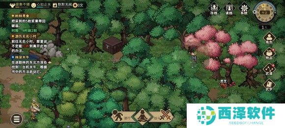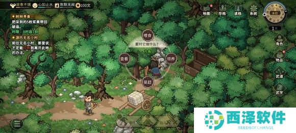 然后找铁匠,完成挖矿任务,买铲子,送礼好感达到60获得烦恼任务,然后去迷踪林藏宝图处,选择出手相助加仁德和勇气,然后进去挖宝藏获得1500块钱,顺便去打野猪(打架或者给10浆果,我是打架过的,刷点经验)。然后返回村子找花四娘完成任务得5000(手机版专属,PC端没有,当时剧情直接跳过不清楚说了啥,结果给了5000)。