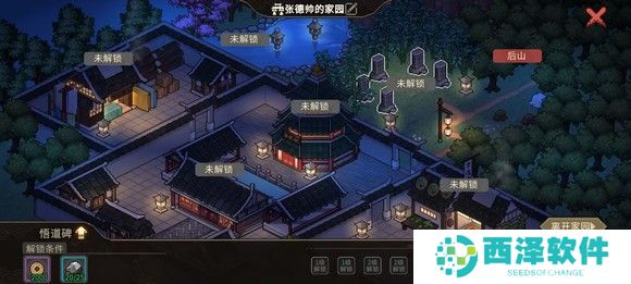 进城后流程差不多,完成樱羽的大梁城任务,赌坊赌钱,太学馆答题,擂台旁边答题,衙门帮助叶银瓶判案,买东西之类的,见人就是好感拉满。(如果白天去大梁城遇到讲戏的可以花5贯撸猴加敏捷经验,我是晚上去的没遇到,后面再说)。然后前往珠光宝气楼解锁家园,优先把后山等级拉满,其次是悟道碑(拉到4级先),天工坊,华清泉等(没有DLC2就先拉天工坊,悟道碑的优先级放后面)。有事没事就去后山砍树挖矿提高臂力和能力