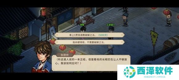 来到霖安城之后找知府领钱加名声(刚来到霖安城先让宠物驻足,不然会被赶出去,领完奖励名声到3级就可以不用了),路上遇到云游道人花5贯获得免疫流血特征(白天在集市里面)