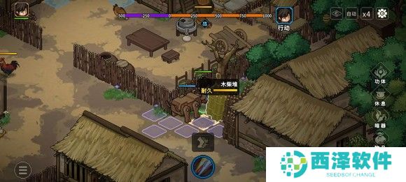 打破木材堆以后往里面走,然后开宝箱拿藏宝图,铜钥匙在屠户旁边木柴堆拿,找部分村民易物也行