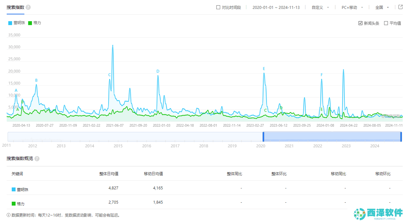 (图一:百度指数显示董明珠搜索量超过格力电器)