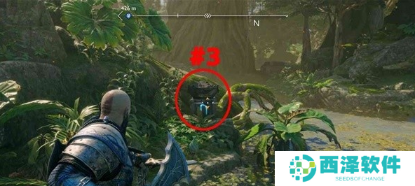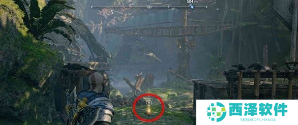 13、过桥后右拐小路左边点燃第三个符文机关,回头在桥下找到诺伦三女神宝箱,这时能直接打开。