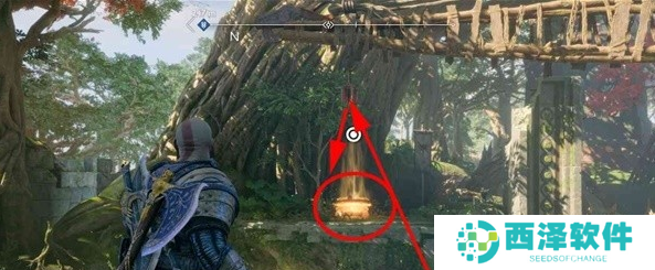15、跳到下面后在小洞里找到小宝箱,接着使用混沌之刃拉断石柱。