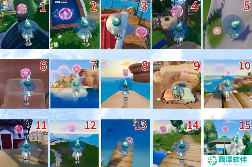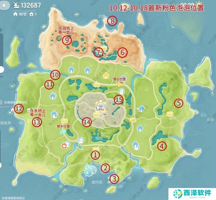 10.12-10.18期间地图上有15个粉色泡泡可以收集奖励,分布位置可以参考下图所示。