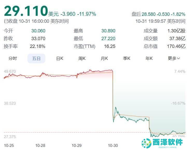 截至10月31日收盘,超微电脑股价再次下滑近12%,报于29.11美元,市值进一步缩减至约170亿美元。