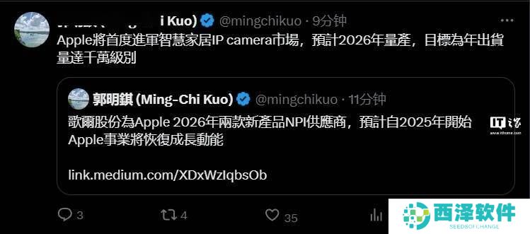 苹果计划进军智能家居市场,2026年量产网络摄像头,目标年出货量超千万。据天风国际分析师郭明錤透露,这款摄像头将与苹果其他硬件无缝集成,提升用户体验。